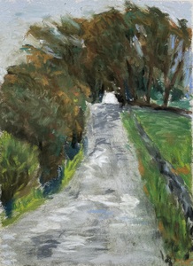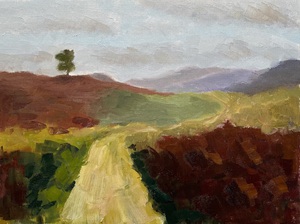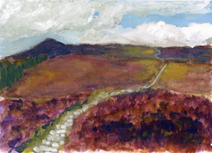2025Pad over de velden van de North York Moors, Noord-Engeland. Olie op papier.