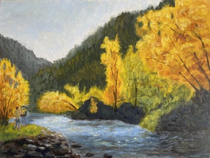 2026Rivierlandschap in de herfst, olie op canvaspaneel, 30x40cm